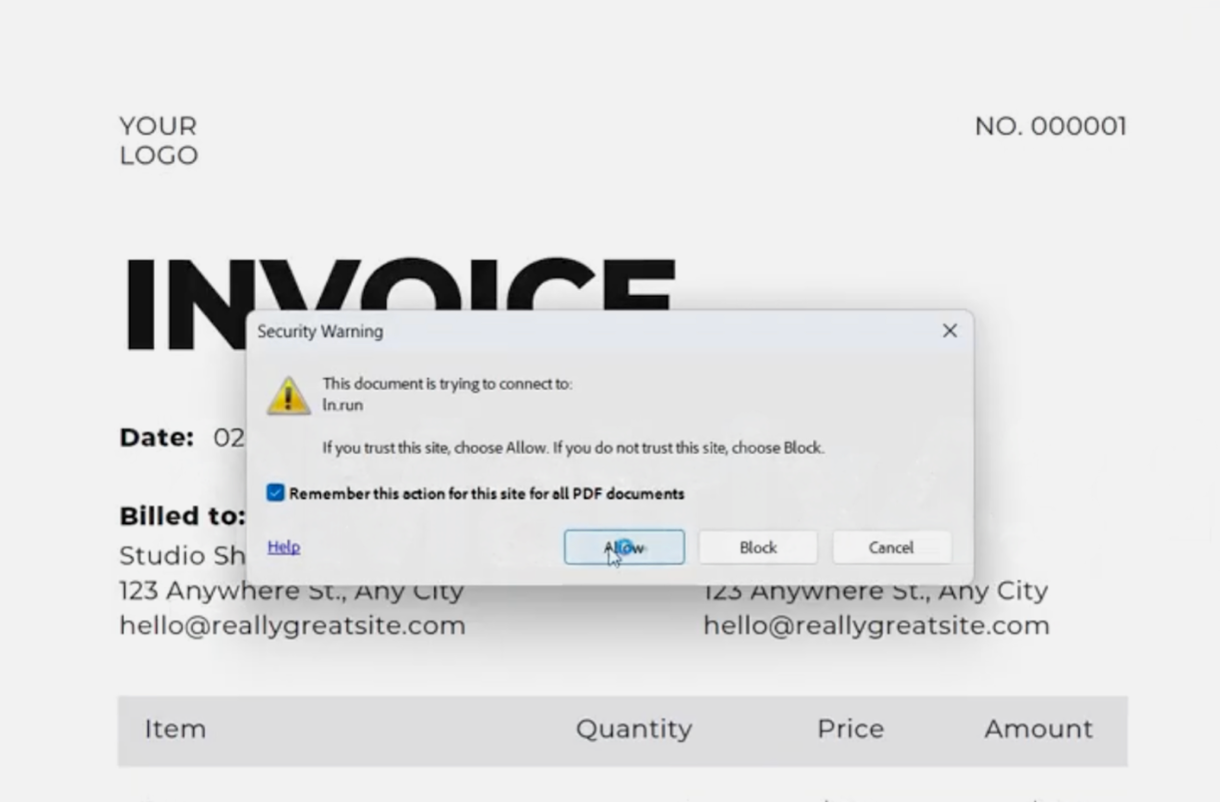 Le second scénario repose sur l’intégration directe de JavaScript dans le PDF. Lorsqu’il est ouvert dans un lecteur comme Acrobat ou dans un navigateur, le script se connecte automatiquement à l’URL d’un fichier malveillant. Une fenêtre pop-up demande alors l’autorisation d’y accéder. Si la victime clique sur « autoriser », le fichier est téléchargé et exécuté. « Les PDF piégés ne sont pas nouveaux », rappelle David Shipley, dirigeant de Beauceron Security. « Mais MatrixPDF simplifie considérablement la tâche des cybercriminels. »