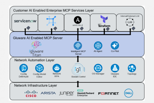 La plateforme Titan de Gluware coordonne plusieurs agents IA provenant de plateformes tierces d’observabilité, de gestion des services et de systèmes de sécurité, souhaitant apporter des modifications réseau simultanées.