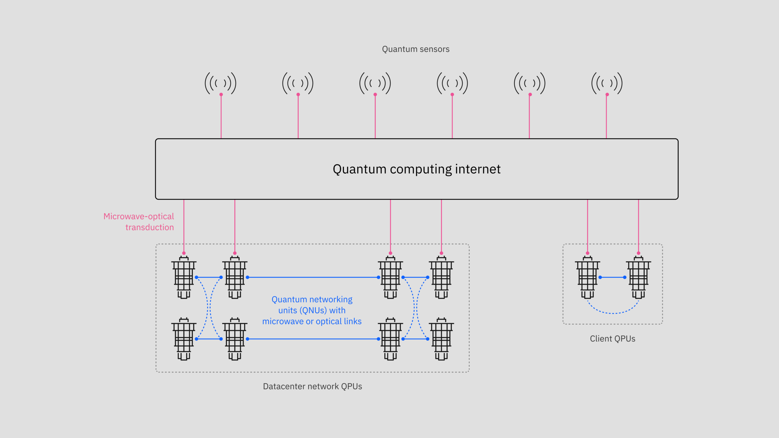Les défis sont nombreux comme la gestion de l’intrication de qubits provenant de plusieurs ordinateurs quantiques distincts situés dans des environnements cryogéniques différents. Il est donc indispensable « d’inventer d’autres connexions, notamment des transducteurs (capable de transformer le signal) micro-onde/optique et une pile logicielle » expliquent les deux sociétés. Chacune d’entre elles va apporter son expertise. IBM travaille sur le développement d’une interface réseau pour ses systèmes, appelée QNU (quantum networking unit) qui servira de prototypage pour les liaisons basées sur les micro-ondes. Au début du mois, Big blue a collaboré avec le Superconducting Quantum Materials and Systems Center (SQMS) du Fermi National Accelerator Laboratory, situé dans l’Illinois, afin de relier deux ordinateurs quantiques IBM dans des infrastructures cryogéniques distinctes. Le réseau s’appuie sur l’interface QNU.