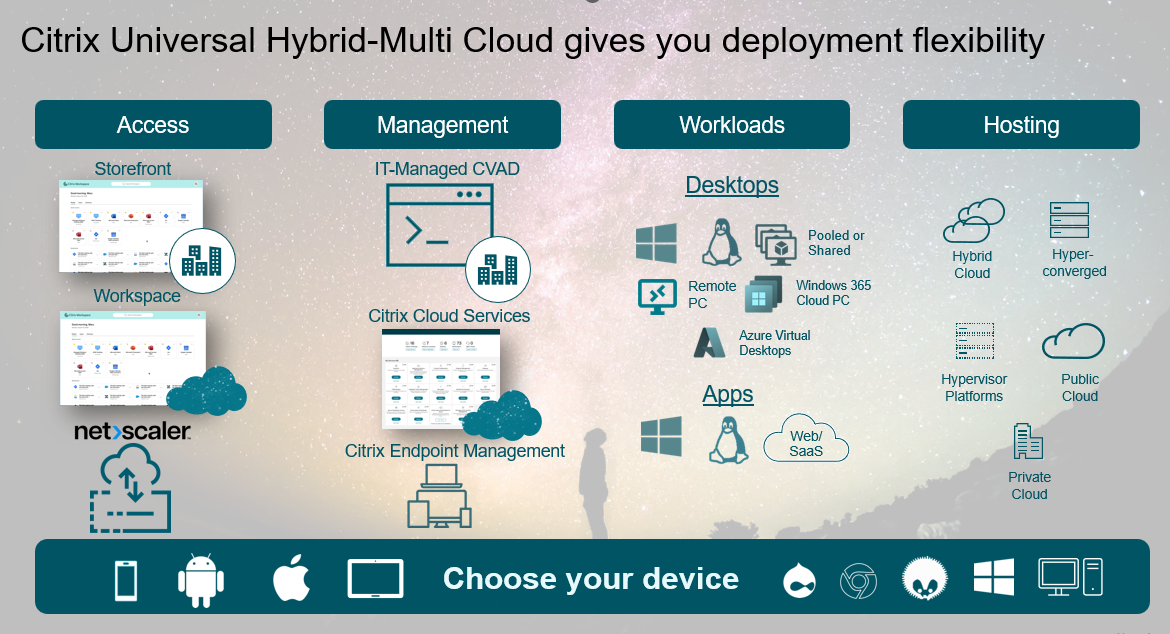 La seconde plateforme dont parle Sridhar Mullapudi est baptisée « Universal Hybrid Multi-Cloud ». Elle ajoute NetScaler et Citrix Endpoint Management à la licence universelle que Citrix a introduite en mars 2023. L’éditeur précise que cette plateforme est accessible à qu’à partir de 250 postes. Par contre aucune précision n’a été donnée sur les critères d’éligibilité pour la licence Platform. Idem sur le prix des licences qui n’apparait pas dans le blog. Une chose est sûre, l’objectif est double pour Citrix : inciter à consommer plus de produits (pour un montant plus cher probablement) et proposer une alternative à Horizon de VMware. Cette activité a été récemment rachetée par KKR.