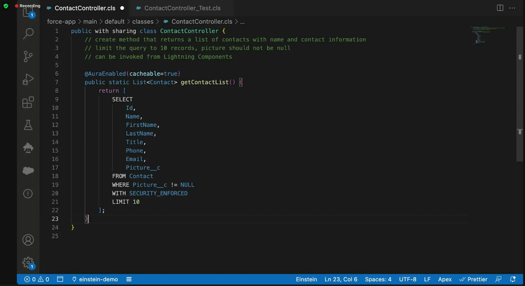 Exemple d’IA générative créant un code logiciel à partir d’une invite de l’utilisateur. Dans ce cas, EinsteinGPT de Salesforce est activé par l’utilisation du grand modèle linguistique GPT-3.5 d’OpenAI. (Crédit : Salesforce)
