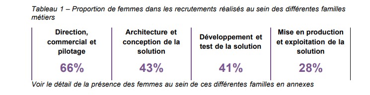Répartition des profils féminins par métiers. (Source: Opiiec)