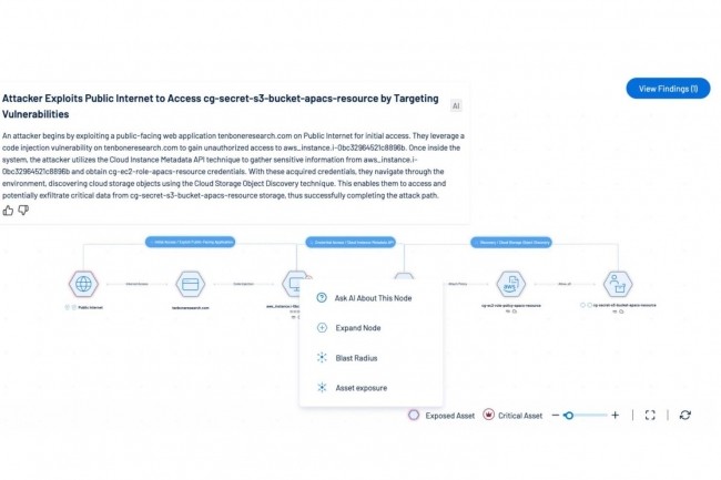 « ExposureAI introduit de nouvelles façons de découvrir les données que vous recherchez. Désormais, vous pourrez simplement poser des questions en utilisant des requêtes de recherche en langage naturel pour accélérer le processus de recherche », explique Tenable. Musclée par ExposureAI, sa plateforme One réduirait le temps consacré à l’analyse manuelle en incorporant l’IA générative pour résumer le chemin d’attaque complet dans un récit écrit décrivant les tactiques, techniques et procédures (TTP) de l’attaquant, depuis le point d’entrée initial jusqu’à la cible visée.