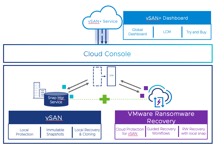 VMware dévoile un aperçu de Cybersecure Storage, qui réduira les temps de récupération en intégrant le flux de travail de Ransomware Recovery avec des instantanés natifs de vSAN pour fournir des optimisations de transfert. (Crédit VMware)