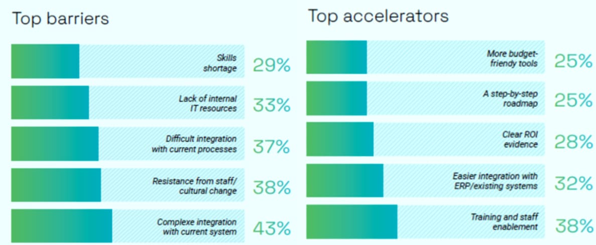 Les principaux freins et leviers à la bascule digitale de la maintenance industrielle du réactif vers le prédictif. (Source : Osapiens)