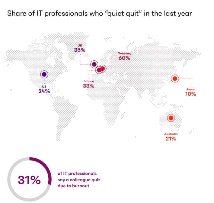 En France, le phénomène de démission silencieuse a été évoqué par un tiers des informaticiens. (Source:  Ivanti/Crédit image: Ivanti)