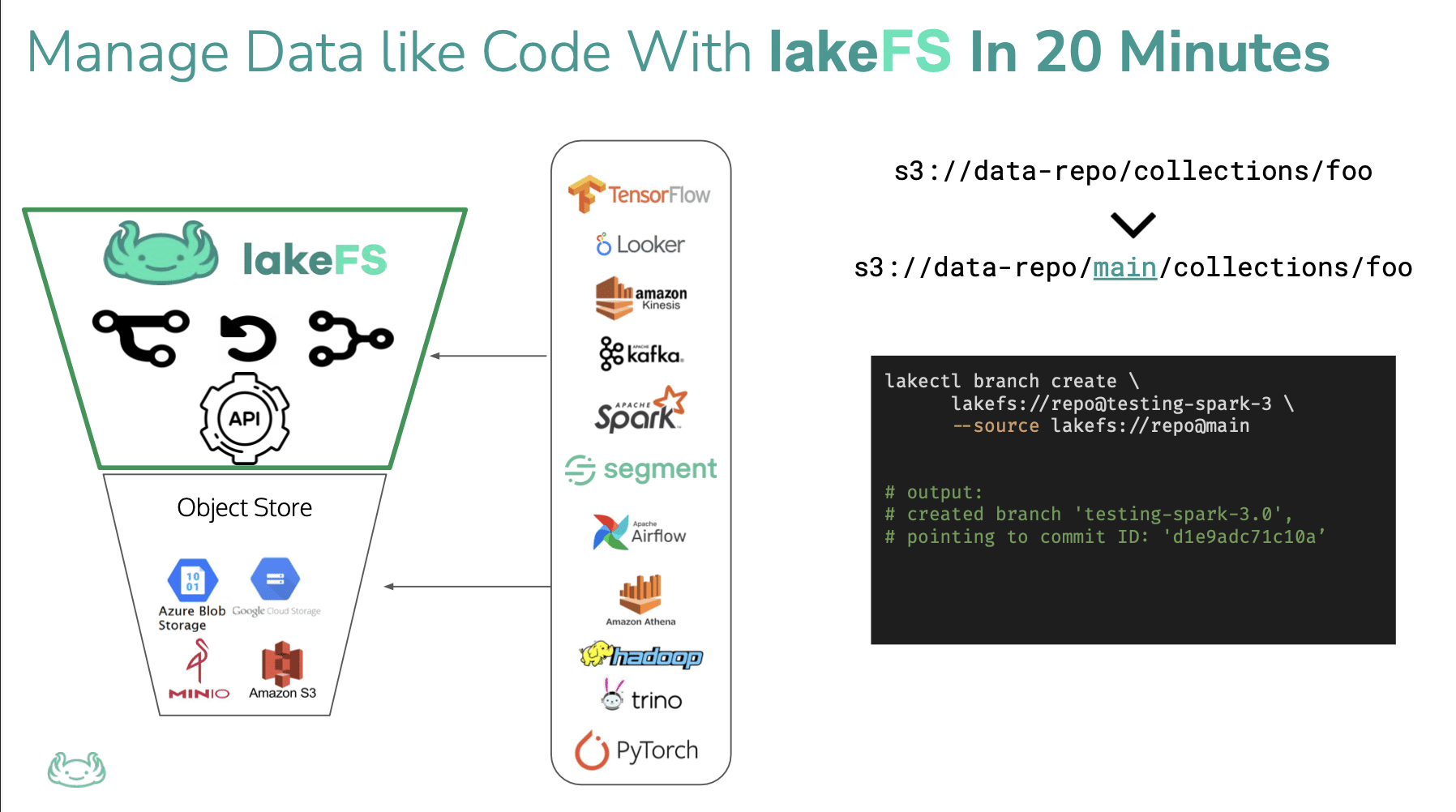 Plateforme open source dédiée à la gestion de data lakes (Hadoop, Databricks, Iceberg, Jupyter, Kafka), LakeFS vient transformer les volumes de stockage objet en dépôts de type Git à l’aide de liens symboliques (des pointeurs vers les données source).