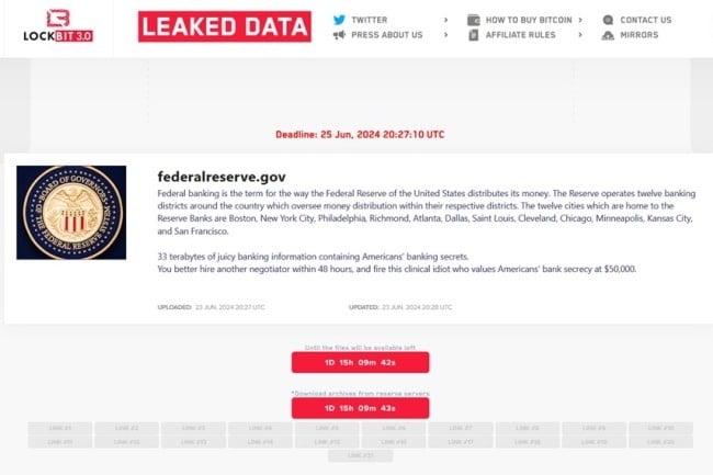 Le groupe de ransomware, Lockbit 3.0 affirme détenir 33 To de données sensibles provenant de la réserve fédérale américaine (FED). Cette dernière n’a pour l’instant pas communiqué sur la véracité de la violation de données.