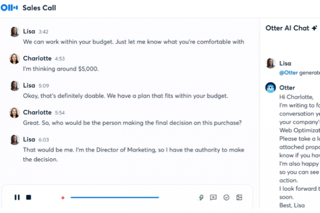 Sept mois après le lancement d’OtterPilot, le service de transcription à base d’IA a lancé un outil de réunion spécifique pour le métier de la vente avec des résumés d’appels et de l’automatisation de la saisie des données CRM.