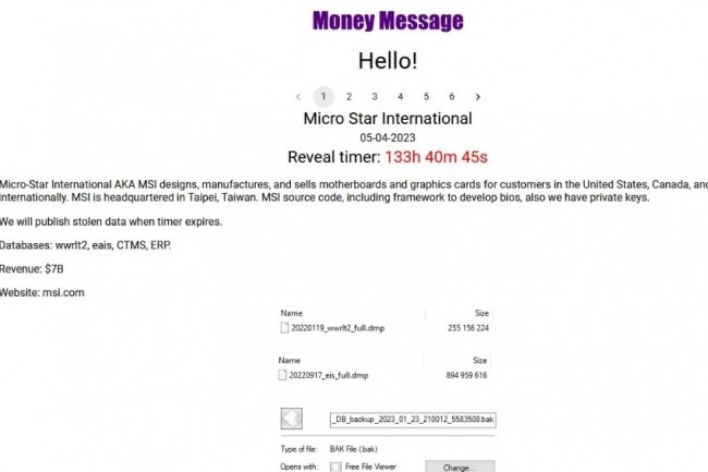 Selon Bleeping Computer qui a pu accéder à des échanges de chat entre le cybergang et des employés de MSI, une rançon de 4 millions de dollars a été demandée. Le volume des données dans les mains des pirates s’élèverait à 1,5 To et ces derniers menacent de tout mettre en ligne d’ici 5 jours environ. Si MSI ne s’est pas attardé sur l’origine de cette cyberattaque, d’autres ont été plus bavards. Money Message a indiqué être en possession de code source du fabricant, incluant un framework pour développer un BIOS ainsi que des clés privés.