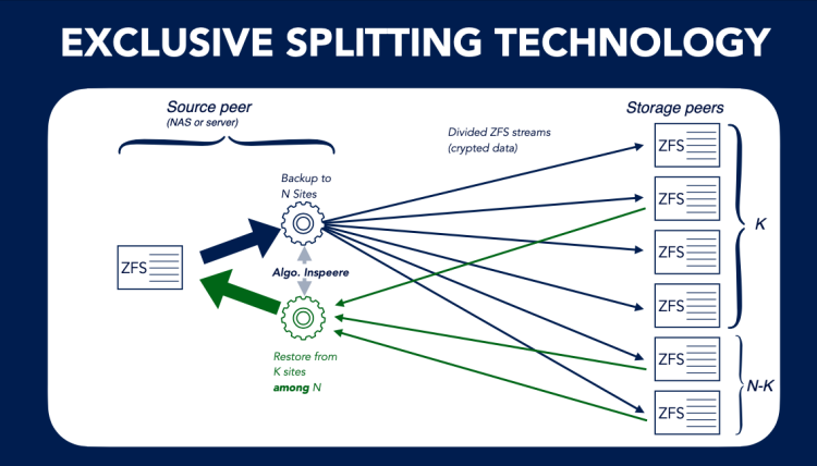 Inspeere combine le système de fichiers ZFS avec un algorithme d’Erasure Coding pour assurer la répartition des données sur les systèmes cibles. (Crédit Inspeere)