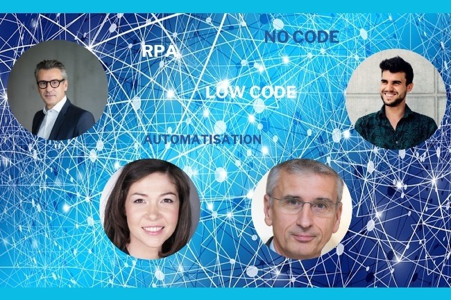 Le 30 novembre à 9h, Enjeux DAF et Le Monde Informatique vous convient à une émission en Web TV sur la RPA, le low code et même le no code au sein des DAF. Avec nos 2 témoins Jean-Philippe Faure d’Eiffage et Aleksandra Grillard d’Atland, notre expert Armand Angeli et la start-up ZeToolBox (De G à D sur la photo) nous essaierons de voir comment ces solutions à la main des métiers peuvent les transformer.