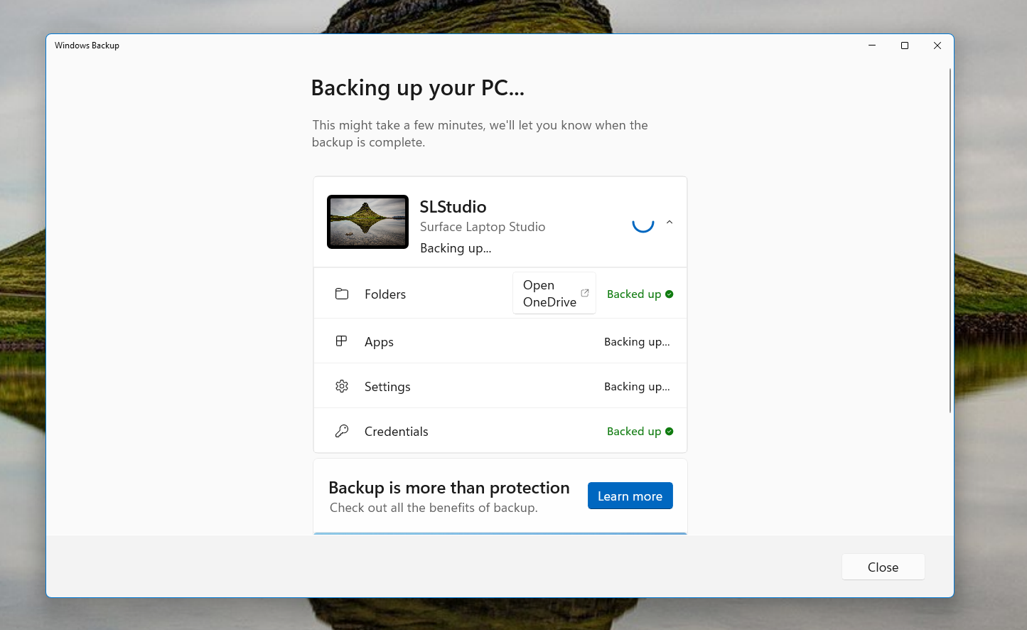 Proposée avec la mise à jour d’automne de Windows 11, la fonction back-up vient sécuriser les PC. (CréditMark Hachman / IDG)